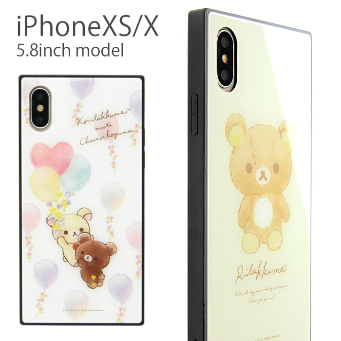 リラックマ スクエア ガラスケース iPhone XS iPhoneX ハードケース オシャレ スマホ コリラックマ かわいい iPhoneXS アイフォン xs アイホンXS チャイロイコグマ カバー ジャケット ケース 携帯ケース スマホケース キャラクター