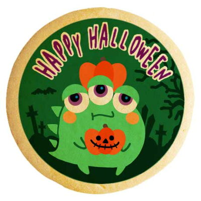 ハロウィン お菓子 メッセージクッキー HAPPY HALLOWEEN 三つ目のグリーンモンスター イラスト 個包装